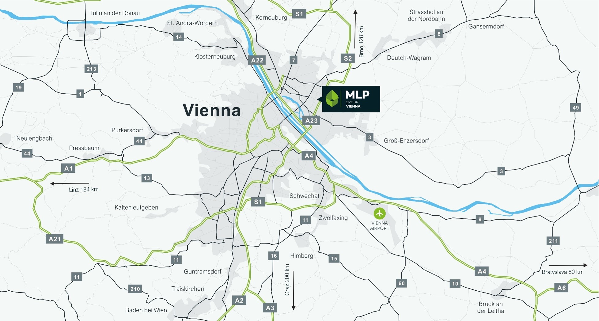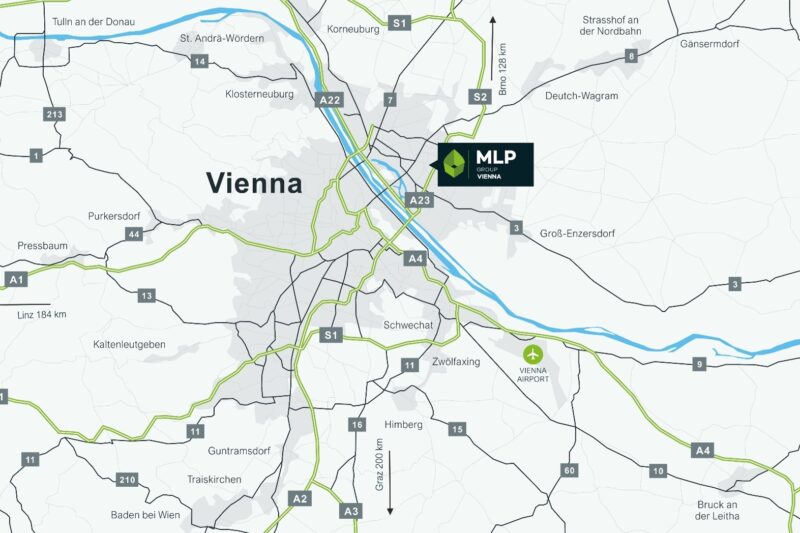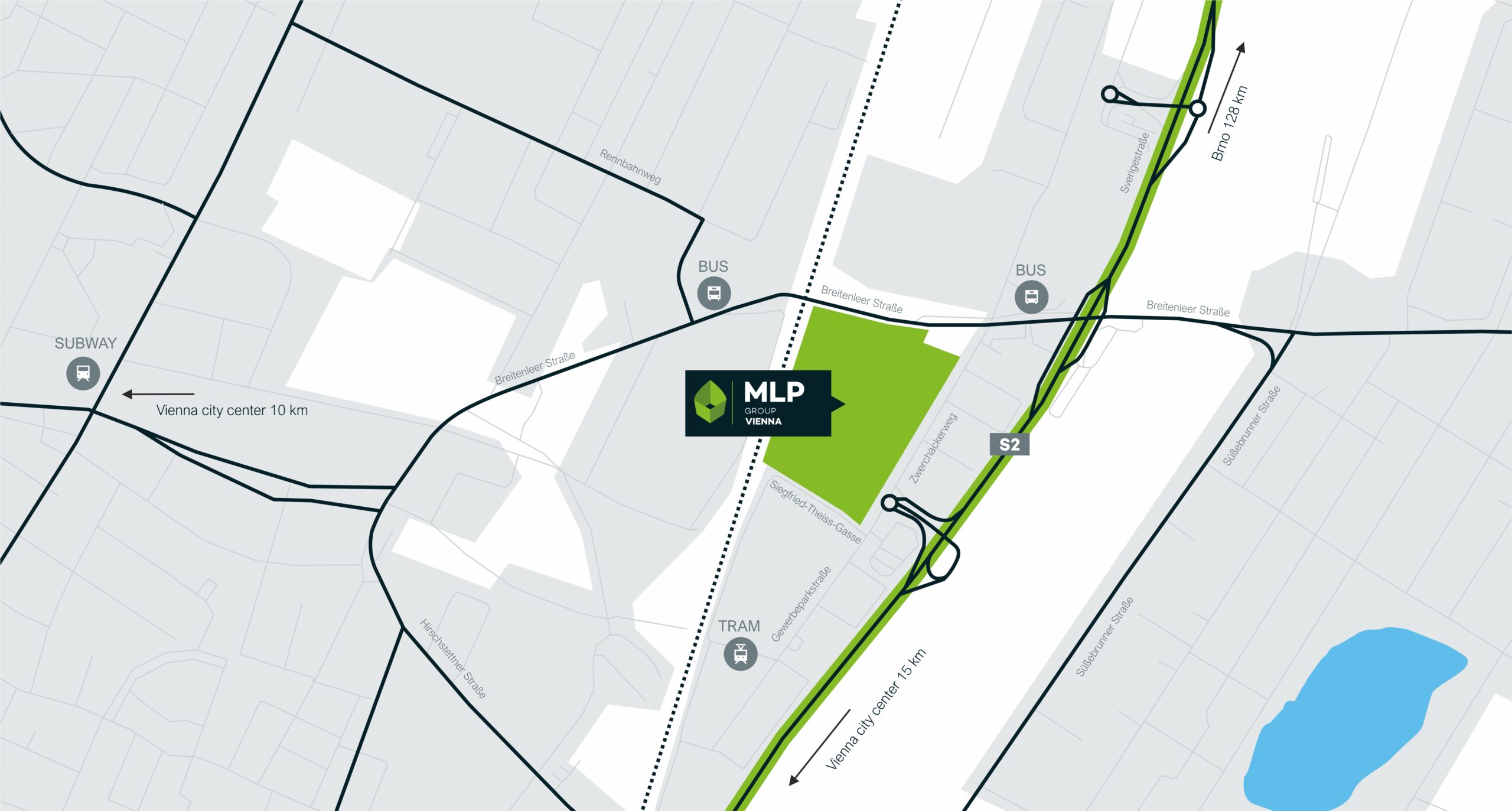 Der MLP Business Park Wien entsteht unweit des Stadtzentrums der österreichischen Hauptstadt Wien. Der innovative Gewerbe-Park wird auf einem rund 9.8 ha großen Grundstück errichtet und bietet insgesamt rund 55.000 m² Nutzfläche, verteilt auf vier Gebäude.