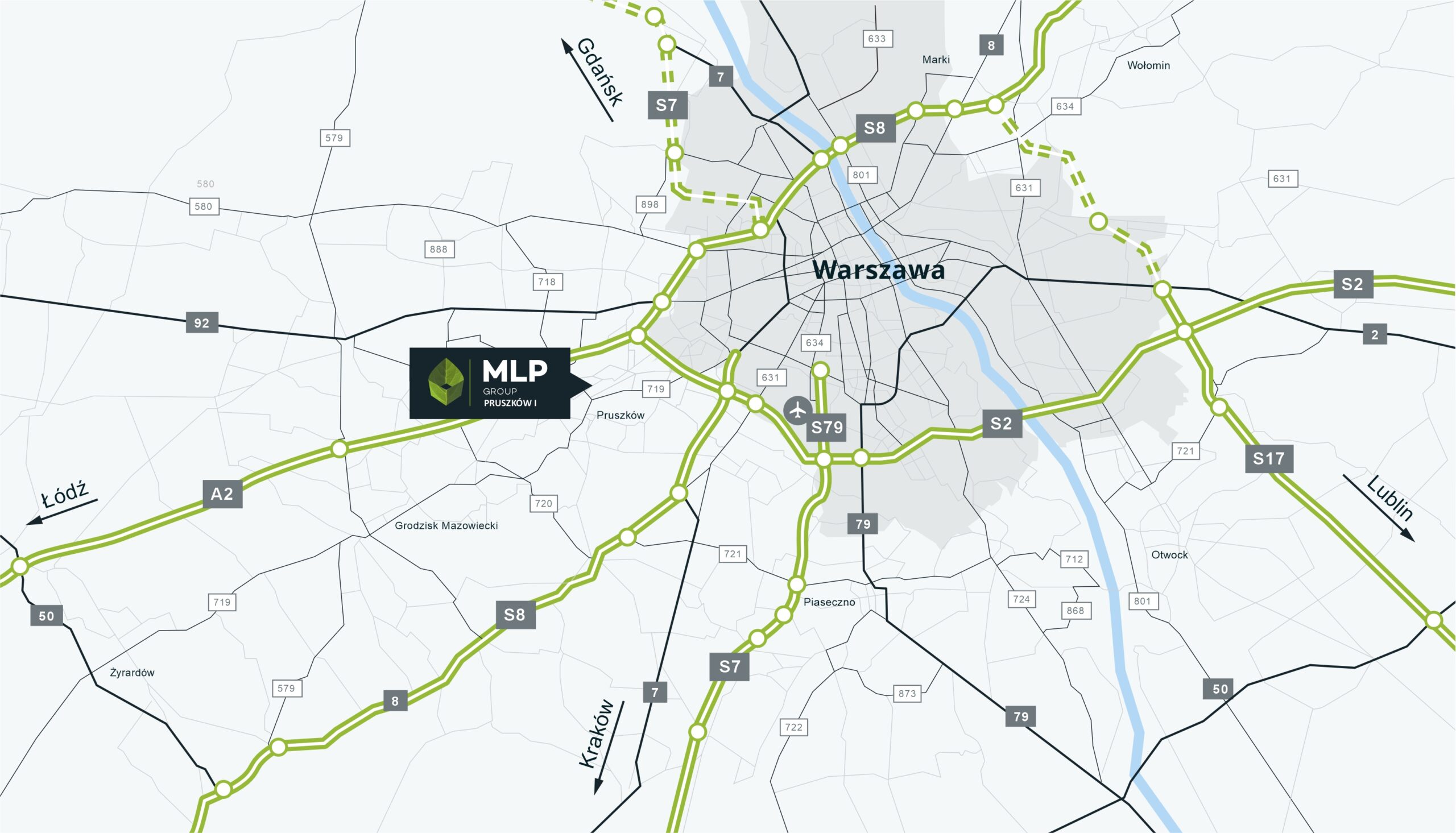 MLP Pruszków I to inwestycja prowadzona w Pruszkowie na działce 43 ha, gdzie powstało łącznie 168 911 m² powierzchni magazynowo- produkcyjnej.